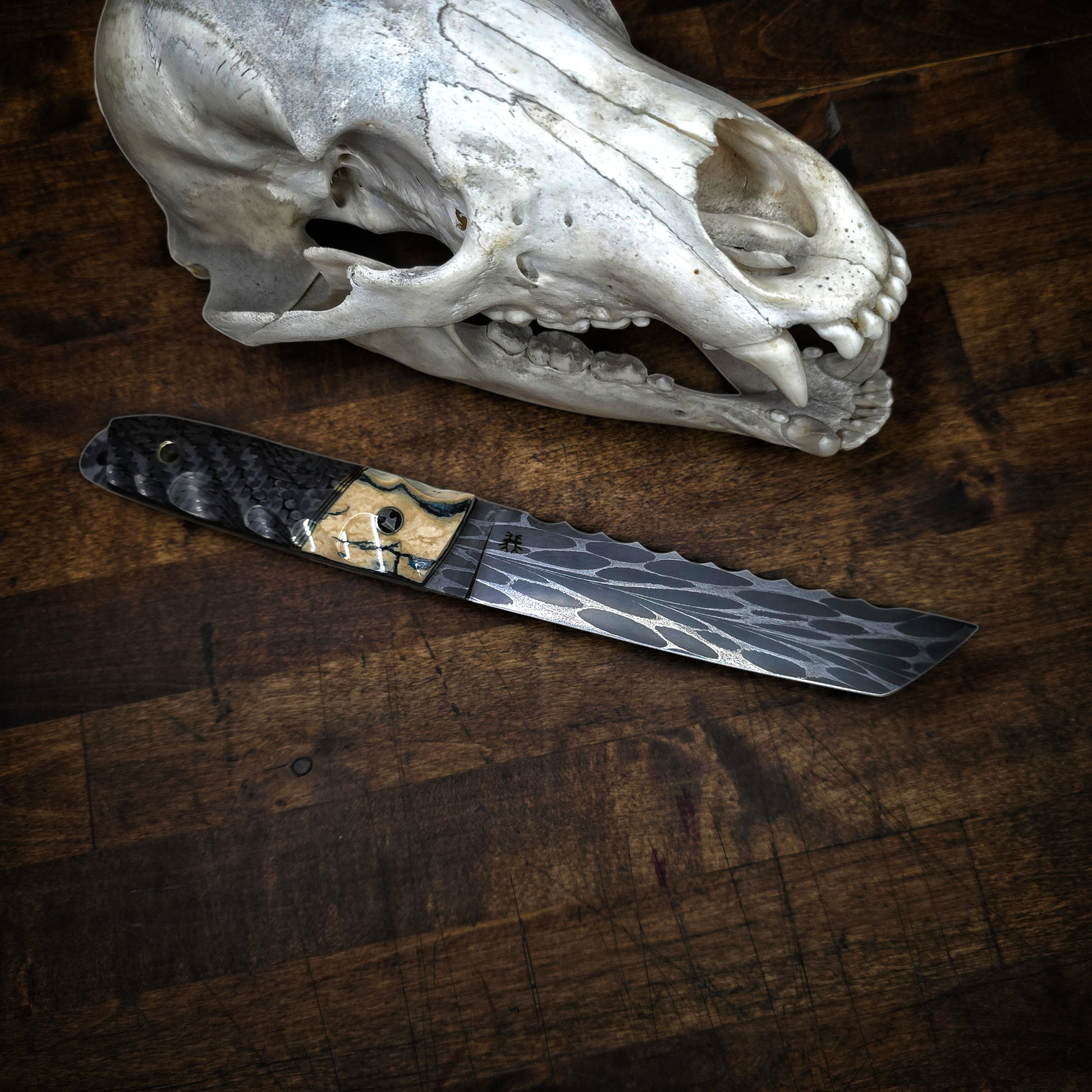 Mammoth molar and carbon fiber with brass inserts